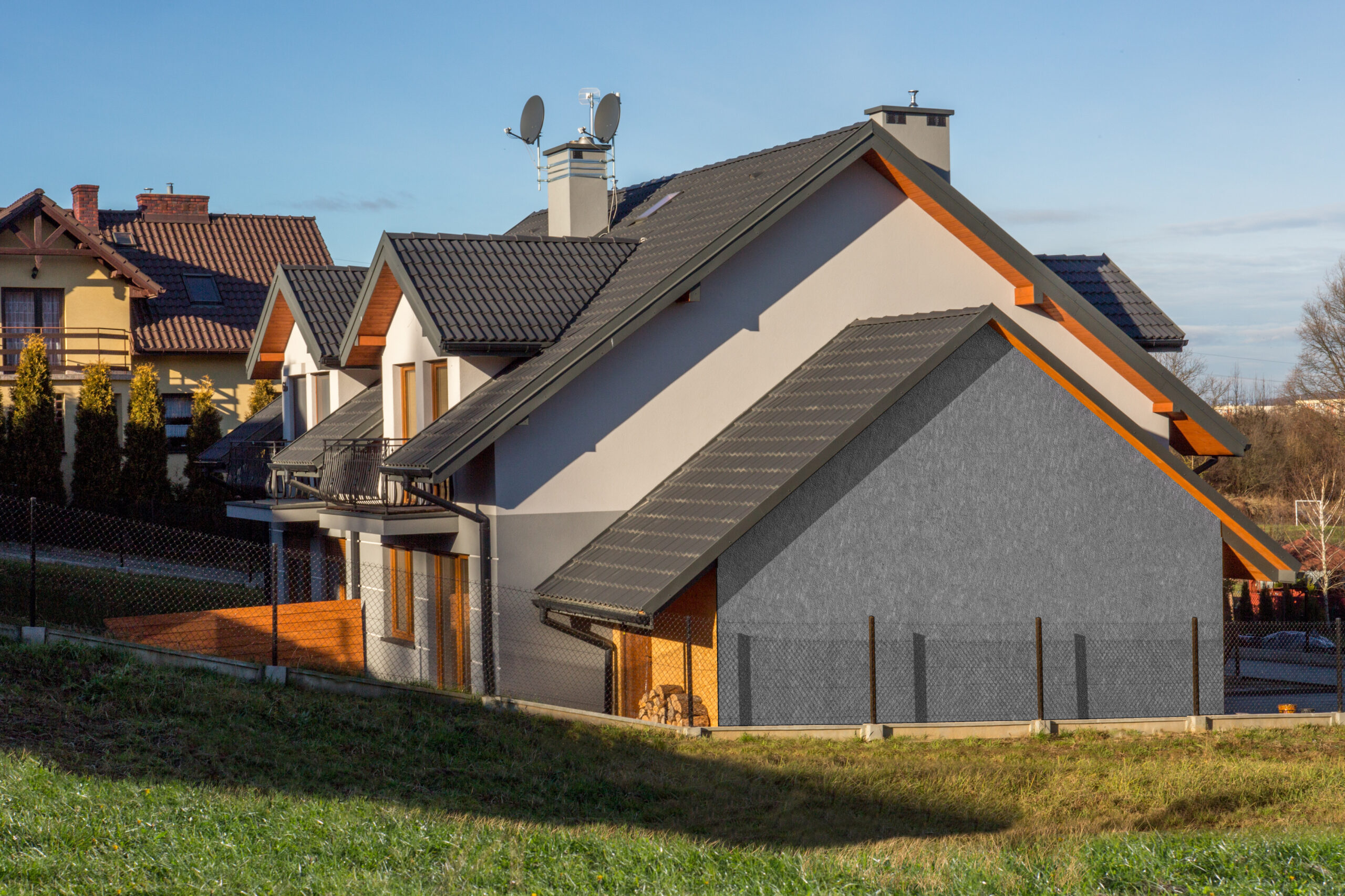 Na 12-arowej działce powstały 4 domy jednorodzinne w zabudowie bliźniaczej.