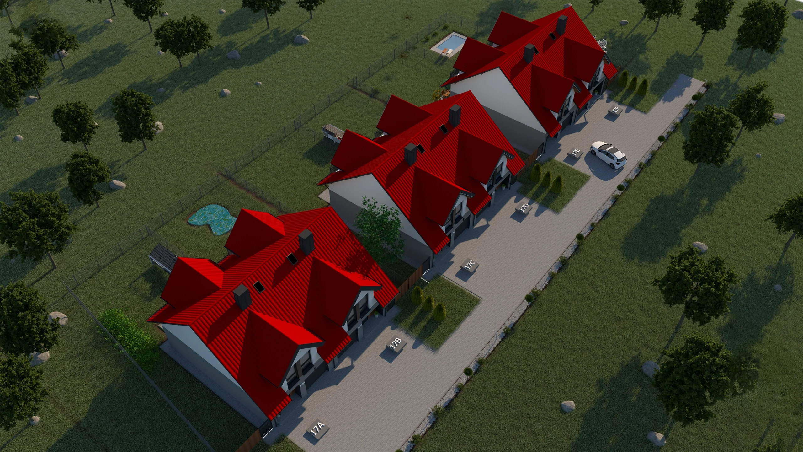 Na 24 arowej działce zaprojektowano osiedle 6 domów jednorodzinnych w zabudowie bliźniaczej.  Charakteryzuje je przestronna i prosta zabudowa. Architektura osiedla jest dogłębnie przemyślana. Wykorzystano projekty renomowanej firmy architektonicznej – Archon. Firma ta jest na rynku od wielu lat. Dlatego jej projekty są sprawdzone i dopracowane. Cieszą się wielkim zainteresowaniem i uznaniem wśród klientów.